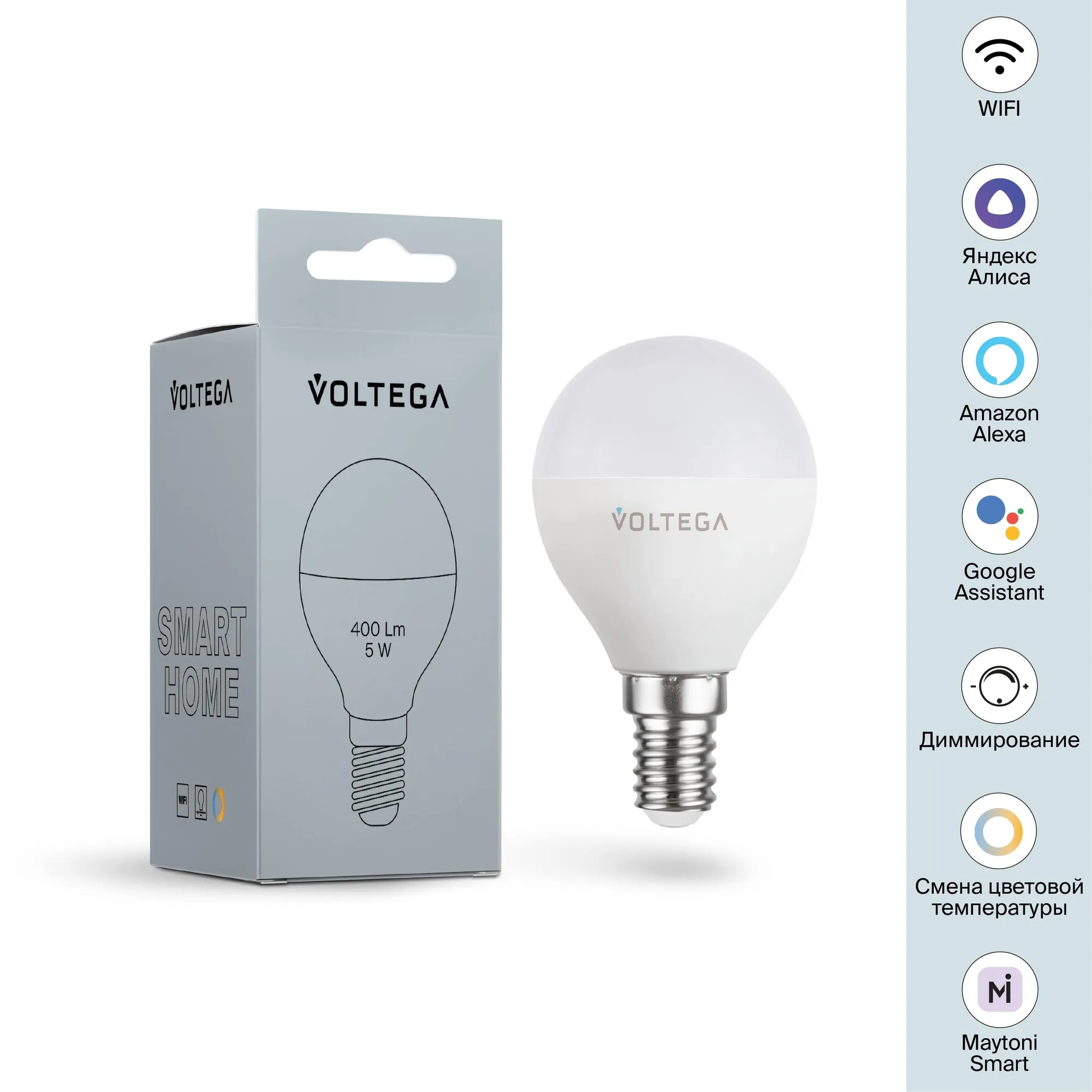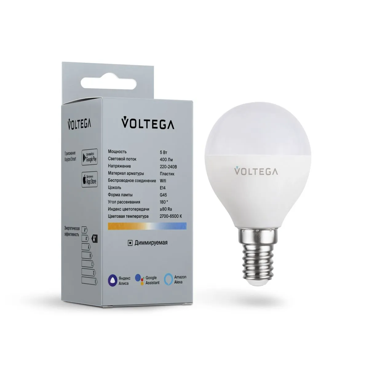 Лампа светодиодная диммируемая Voltega E14 5W 2700К матовая VG-G45E14cct-WIFI-5W 2428 купить в Фрязино по лучшей цене