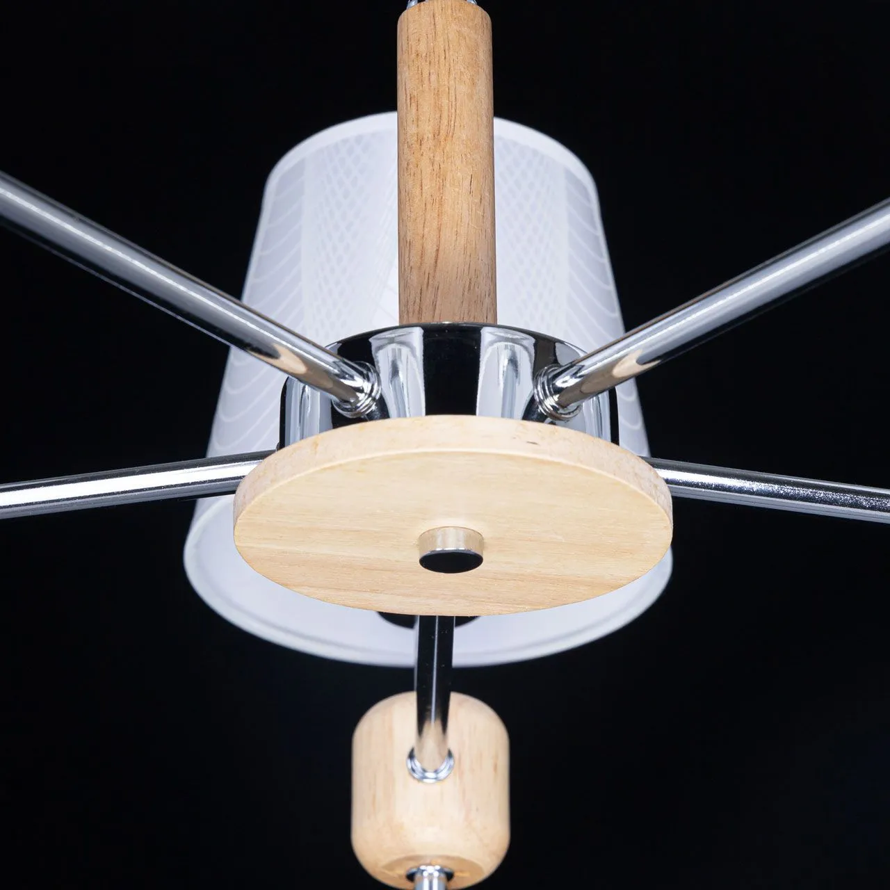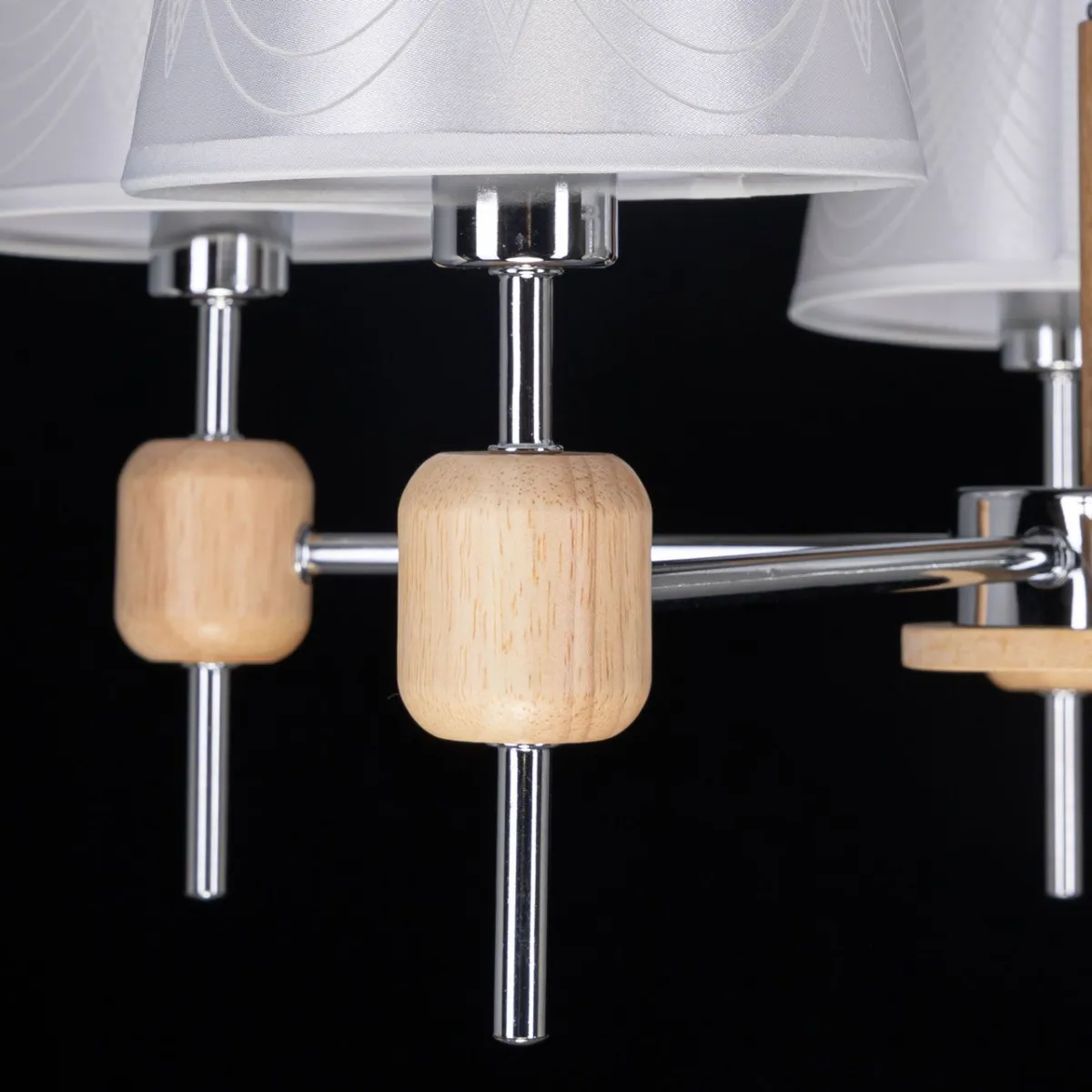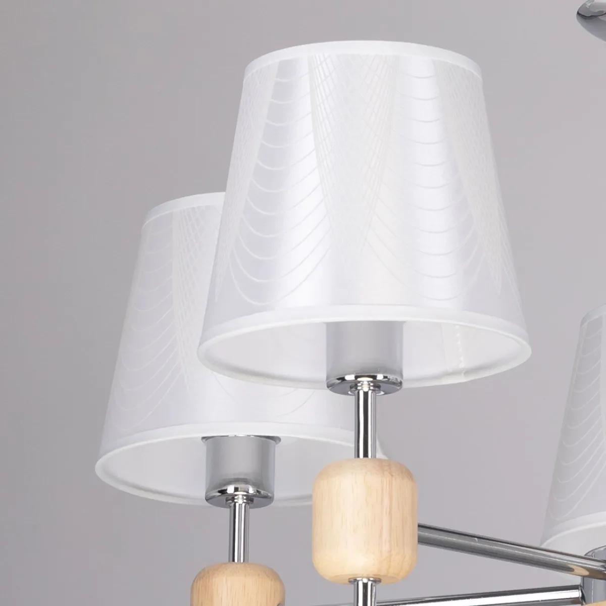 Основание/ металл/ хром Абажур/ текстиль, акрил/ белый, прозрачный Декор/ дерево/ натуральный