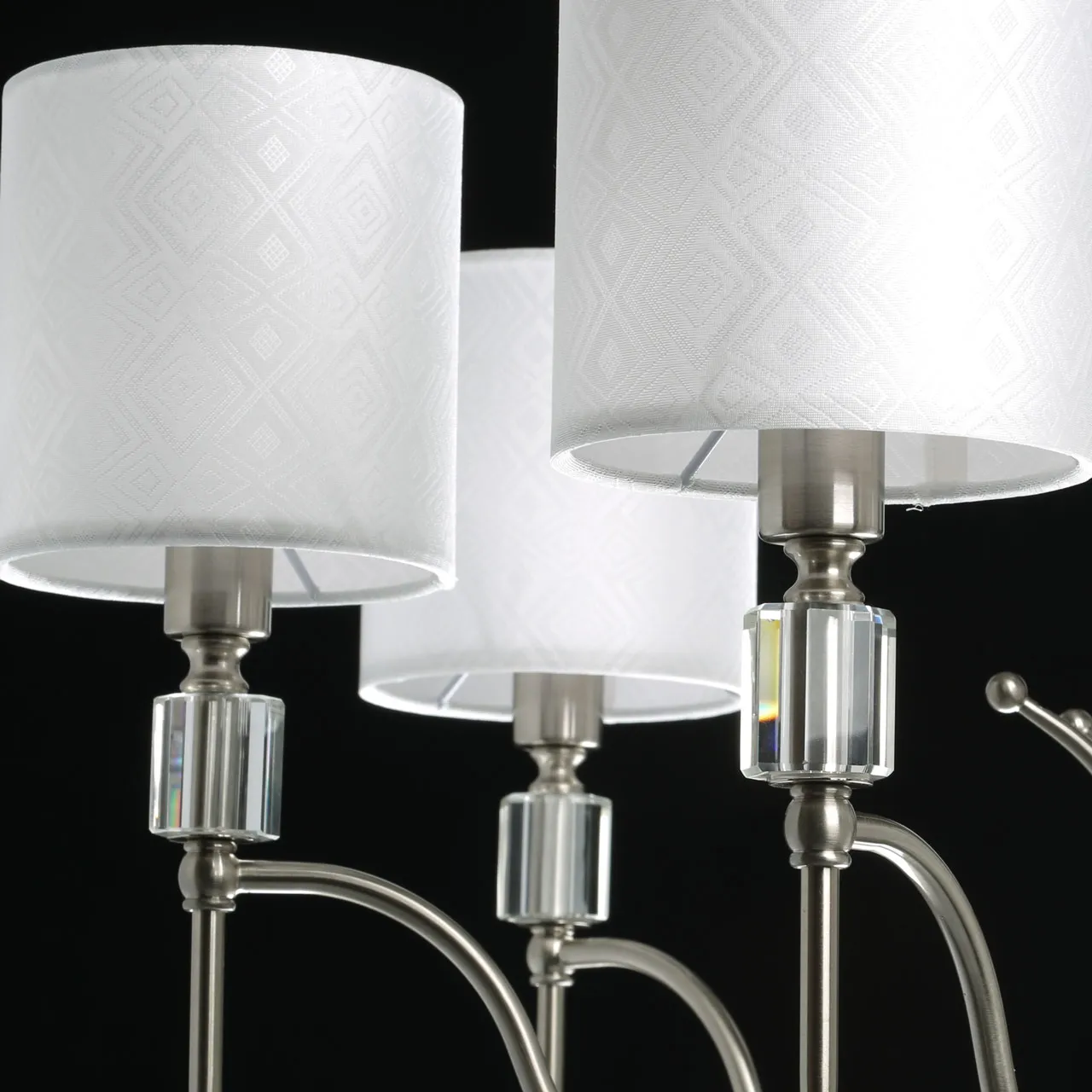 Основание/ металл/ никель Абажур/ текстиль, акрил/ белый, прозрачный Декор/ хрусталь/ прозрачный