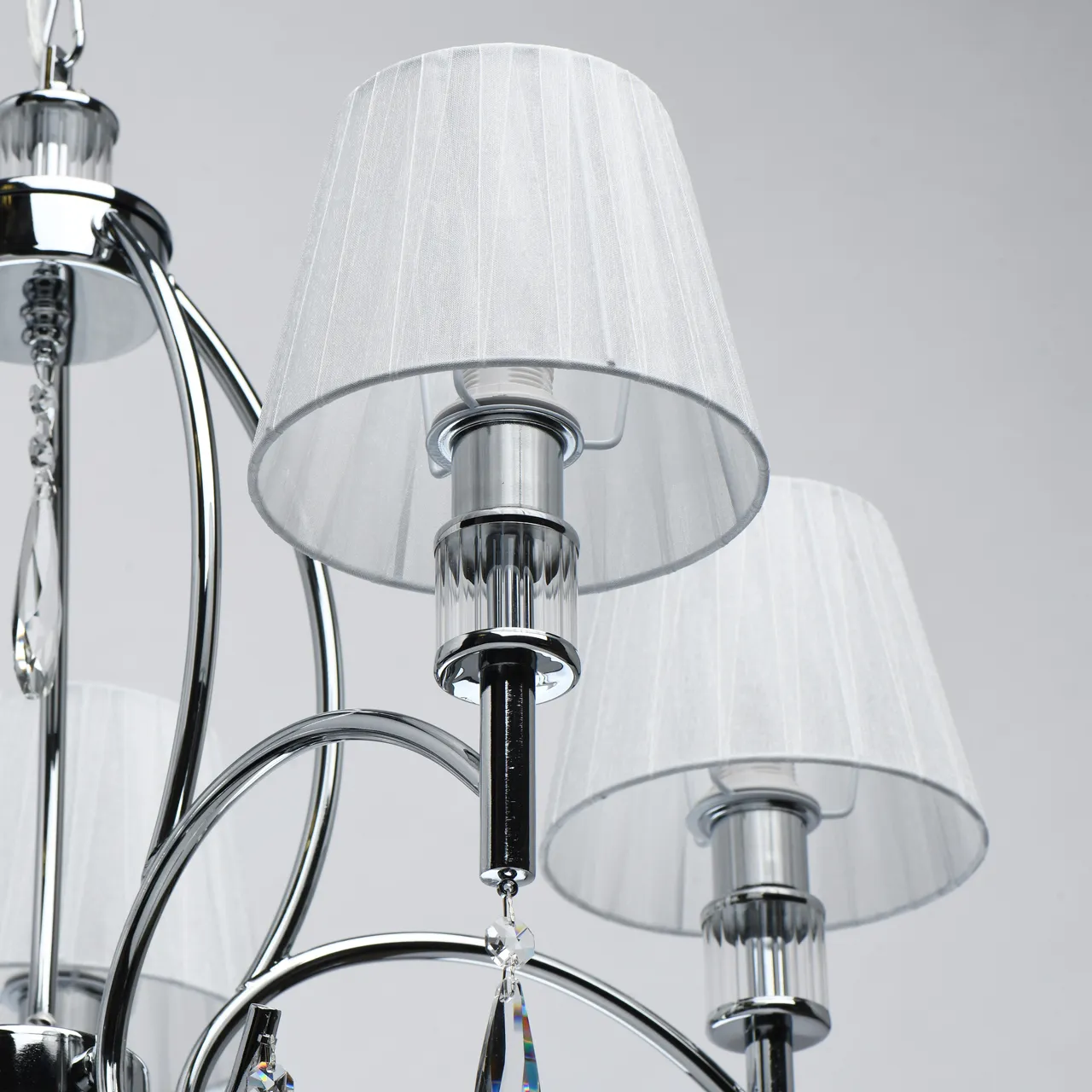 Основание/ металл/ хром Абажур/ текстиль/ белый Декор/ хрусталь/ прозрачный
